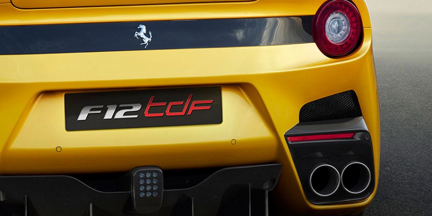 No entanto, há duas perguntas que requerem explicação. Dado que este carro é muito melhor que o F12 Berlinetta e que o 599 GTO, porquê a escolha do nome TDF em vez de F12 GTO? E de onde é que aparece o nome TDF? Ao longo dos 68 anos de história, a Ferrari só usou a sigla GTO três vezes – no 250, no 288 e no 599 – e essa sigla está apenas reservada para carros muito especiais. Houve receio que, ao usar a sigla em dois modelos consecutivos, se perdesse a exclusividade da mesma. Assim, escolheu-se a sigla TDF, em homenagem ao Tour de France, uma corrida automóvel semelhante às Mille Miglia, ou ao Targa Florio, onde a Ferrari deu cartas nos tempos heroicos da competição automóvel e que ajudou a que o Cavallino Rampante ganhasse a fama que todos lhe reconhecem hoje.