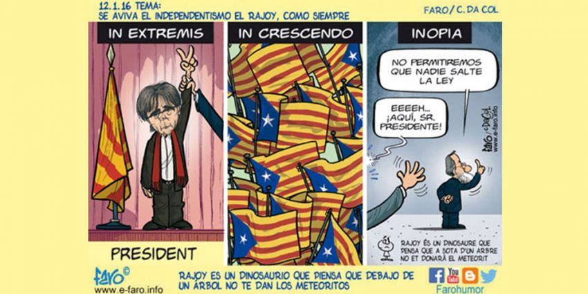 Contudo, Rajoy actua e pensa como a famosa personagem de Pedro Cervantes, uma vez que de Madrid não surgem sinais de que se irá encontrar uma solução pacífica e equilibrada que respeite a vontade da maioria do povo catalão. Inclusive já se falou em jeito de ameaça numa espécie de rebelião de uma micro-região que se encontra dentro da Catalunha, caso o próximo elenco governamental (fosse este qual fosse) volte a insistir na tese da independência.