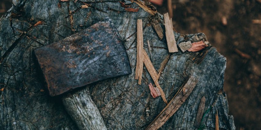 As mãos ásperas seguravam o machado gasto. Instrumento imprescindível para desbravar o caminho. Gasto mas ainda e sempre eficaz com a sua lâmina de fino recorte e metal puro como cada uma das machadas que dava no troco de mais uma árvore.