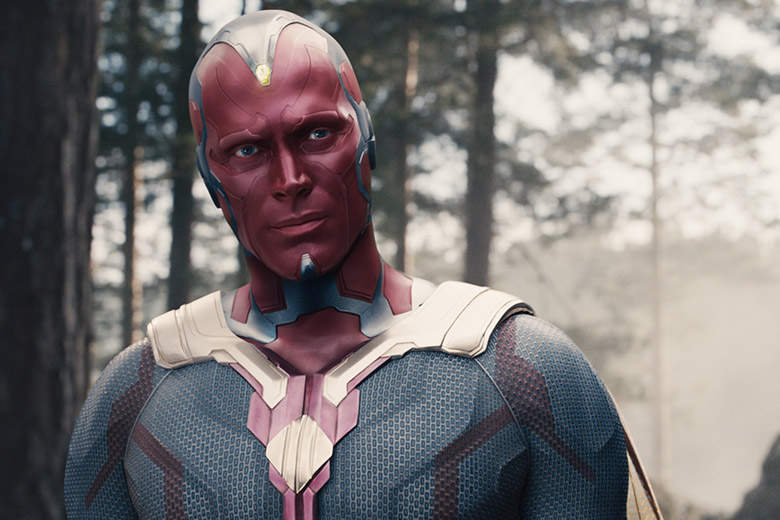 Em 2015 surge o filme “A Era de Ultron”. Voltando à Terra os Vingadores encontram a Pedra da Mente enquanto combatem contra a HYDRA em Skovia. Tony Stark implanta um plano de defesa designado de Ultron. O plano apresenta alguns defeitos e Ultron consegue desenvolver consciência própria. Manipulando toda a tecnologia, Ultron decide destruir toda a Humanidade, e criar uma armadura de vibranium. Após muita destruição e conflito, Tony Stark consegue actualizar o J.A.R.V.I.S. e assim cria o Vision. Agora Vision mantém a Pedra da Mente no superior da sua cabeça. Na cena pós-créditos, Thanos volta a aparecer. Irritado pega na sua luva do poder e refere “Fine. I’ll do it myself”. Segundo o trailer do filme, a situação vai estar negra para o Vision, sem a pedra do infinito que lhe deu a vida, será que consegue sobreviver sem ela? No trailer Thanos tenta tirar-lhe. [/tie_slide]