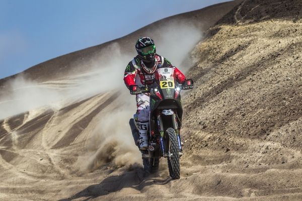 Na quinta etapa foi a vez de Hélder Rodrigues brilhar. O piloto foi oitavo, entre Arequipa e Arica, e por esta altura ficava à porta dos dez primeiros (12º). «Não foi o meu melhor dia porque a etapa foi demasiado curta [136 quilómetros]. Mas é bom terminar em oitavo, especialmente para amanhã. O dia vai ser comprido e prefiro partir mais tarde. Penso que é bom o Dakar começar com etapas dificeis, com areia e dunas. Não estou muito contente porque perdi algum tempo logo no primeiro dia devido a um problema no combustível. Estou seguro de que, se não fosse isso, estaria melhor classificado agora. Tenho 25 minutos para recuperar mas isso não é nada. Ainda há muito caminho a percorrer», confessava. Com efeito, a sexta etapa voltou a correr de feição ao piloto lisboeta, que terminou em sétimo, mas foi Ruben Faria a destacar-se ao acabar em segundo: «Sabia que era a primeira etapa em terreno duro, pelo que tinha de andar forte. Tentei sair bem só que não consegui ir tão rápido como queria por causa do pó. Fui alcançado pelo Paulo Gonçalves mas consegui encontrar o meu ritmo durante a segunda metade do percurso. Queria ter ganho a etapa para dedicar à minha mulher que faz anos hoje [10 de Janeiro] mas terá de se contentar com o segundo lugar.»